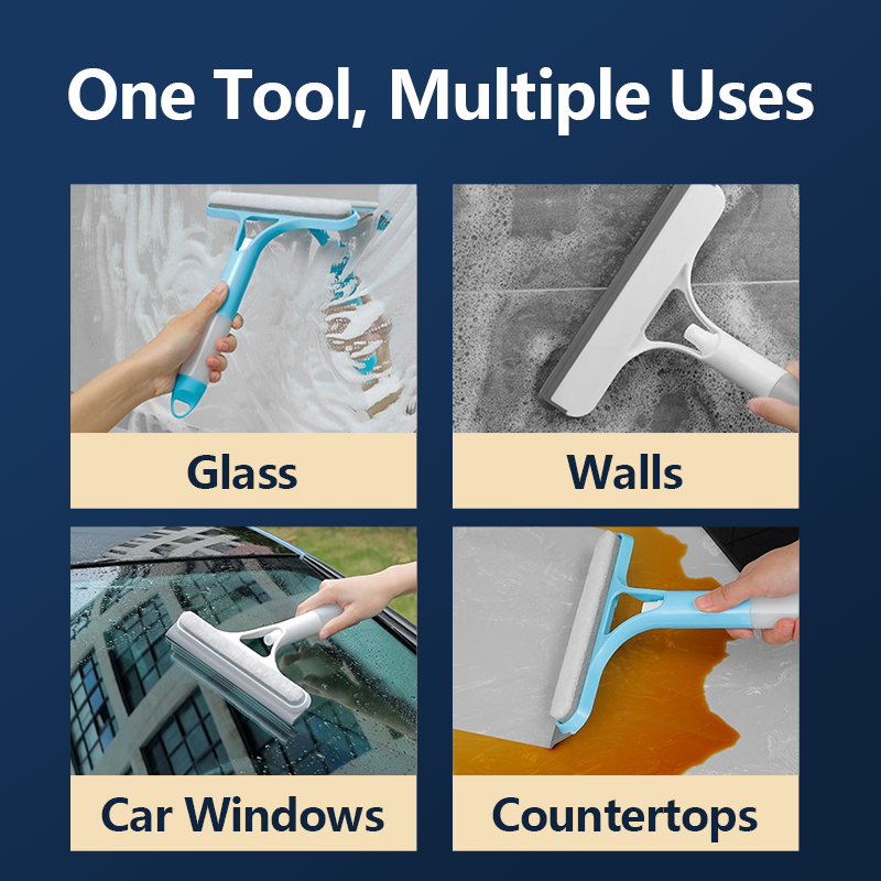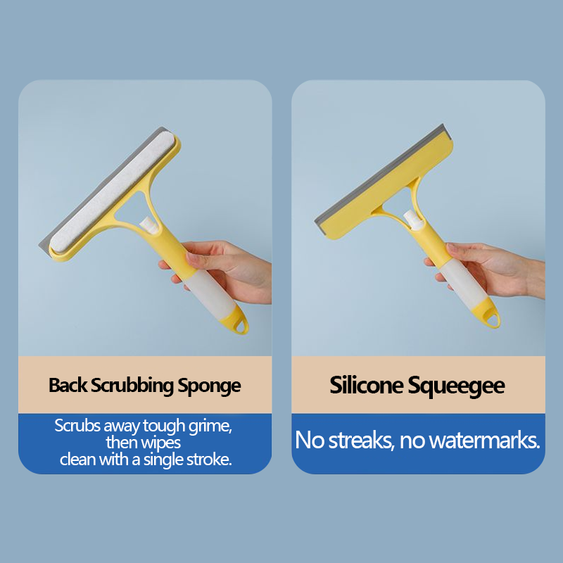The back scrubbing sponge tackles stubborn grime, while the silicone blade follows up with a single swipe—leaving no streaks, no residue, and no watermarks behind.