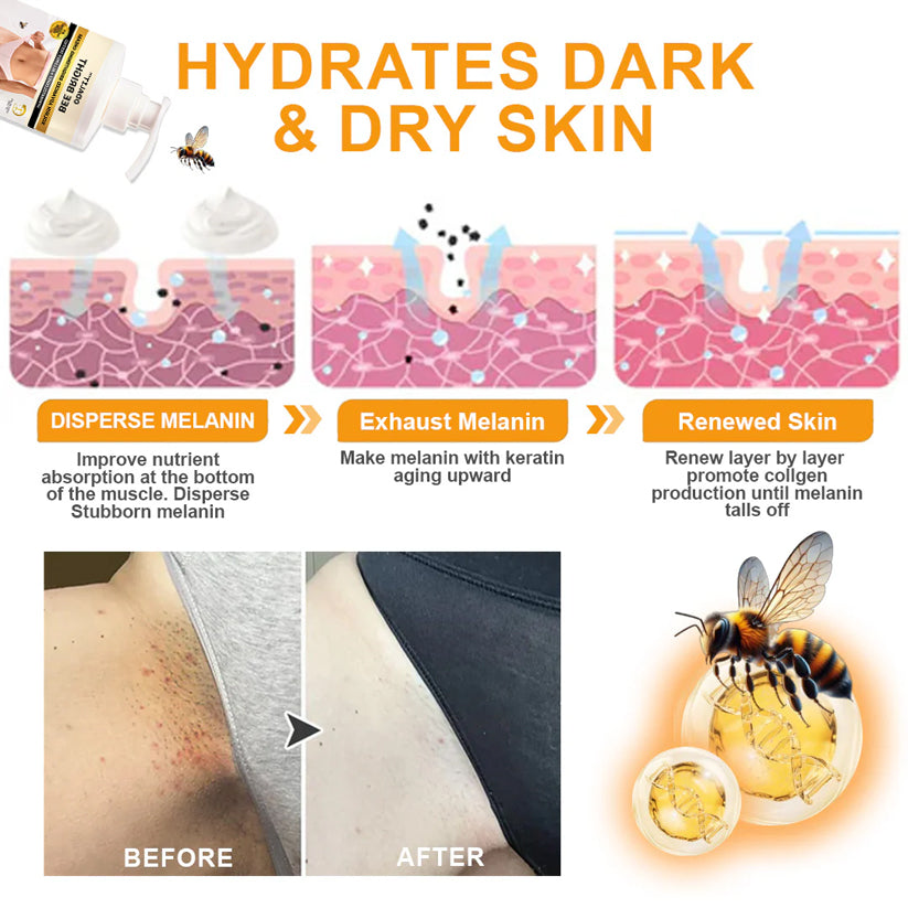 The ODALIT™ Bee Bright Kolirin Advanced Brightening Cream features a powerful formula enriched with bee venom, which contains minerals and vitamins, including zinc, magnesium, potassium, and Vitamin C, which are essential for brightening skin. These agents work diligently to inhibit excessive melanin production, the primary cause behind uneven skin tone. With every application, ODALIT™ actively combats hyperpigmentation, gradually revealing a brighter, more even complexion.